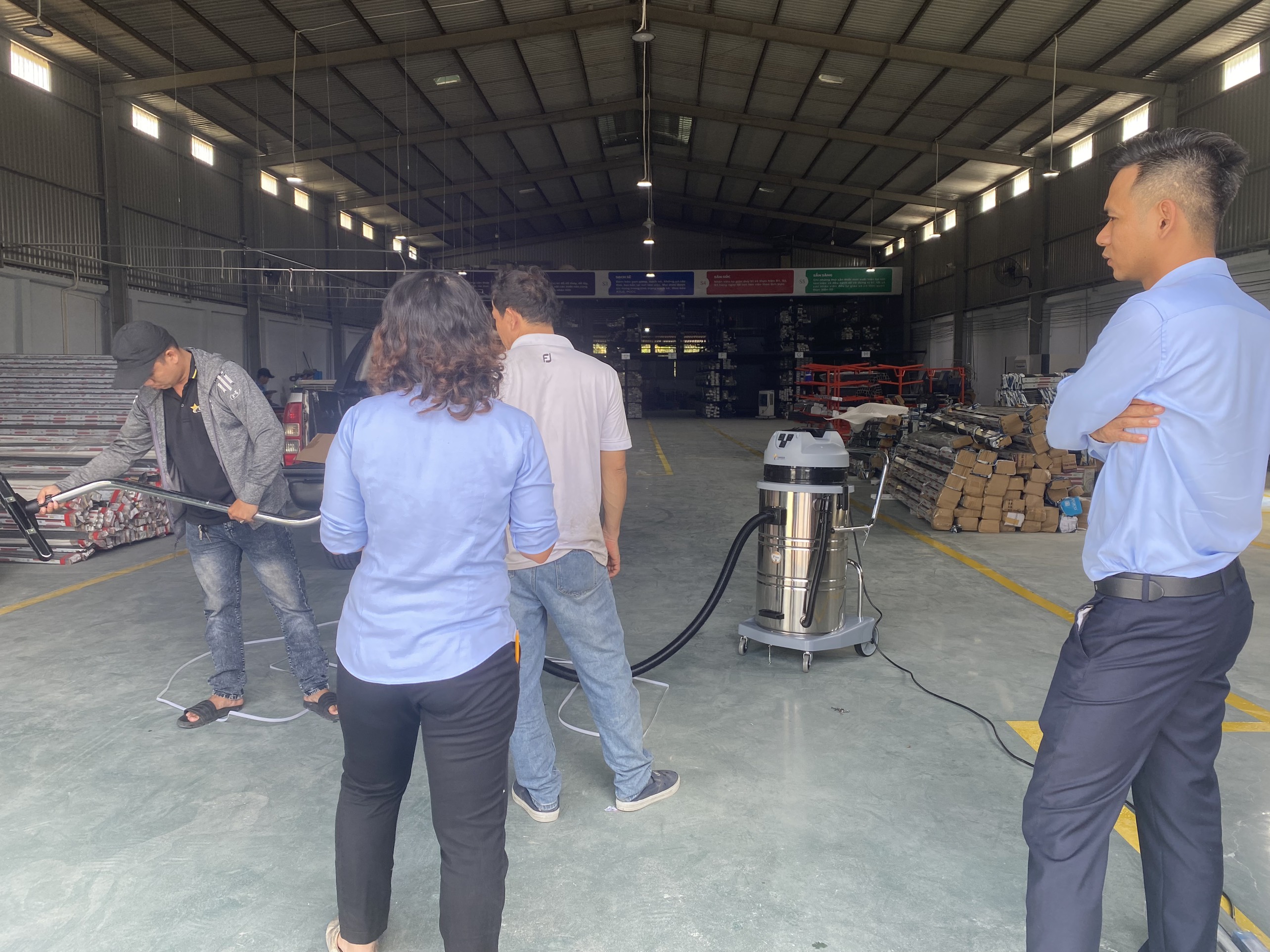 - Hướng Dẫn Sử Dụng Và Bảo Trì: Sau khi bàn giao, kỹ thuật viên của Tahawa đã tiến hành hướng dẫn chi tiết cho nhân viên Huynh Dat JSC về cách sử dụng và bảo trì máy hút bụi công nghiệp để đảm bảo máy hoạt động hiệu quả và bền bỉ.