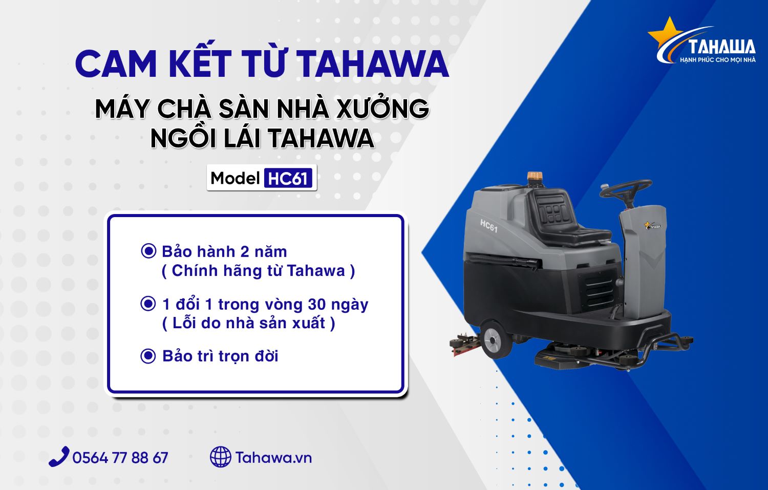 Máy chà sàn ngồi lái của Nhật Tahawa HC61 là một trong những dòng máy chà sàn công nghiệp hiện đại, đáp ứng nhu cầu vệ sinh sàn nhà xưởng, kho bãi, siêu thị, trung tâm thương mại, bệnh viện, sân bay và nhiều không gian rộng lớn khác. Với thiết kế mạnh mẽ, hiệu suất làm việc cao và khả năng vận hành linh hoạt, đây là sản phẩm lý tưởng để giúp doanh nghiệp tiết kiệm thời gian và chi phí vệ sinh.
