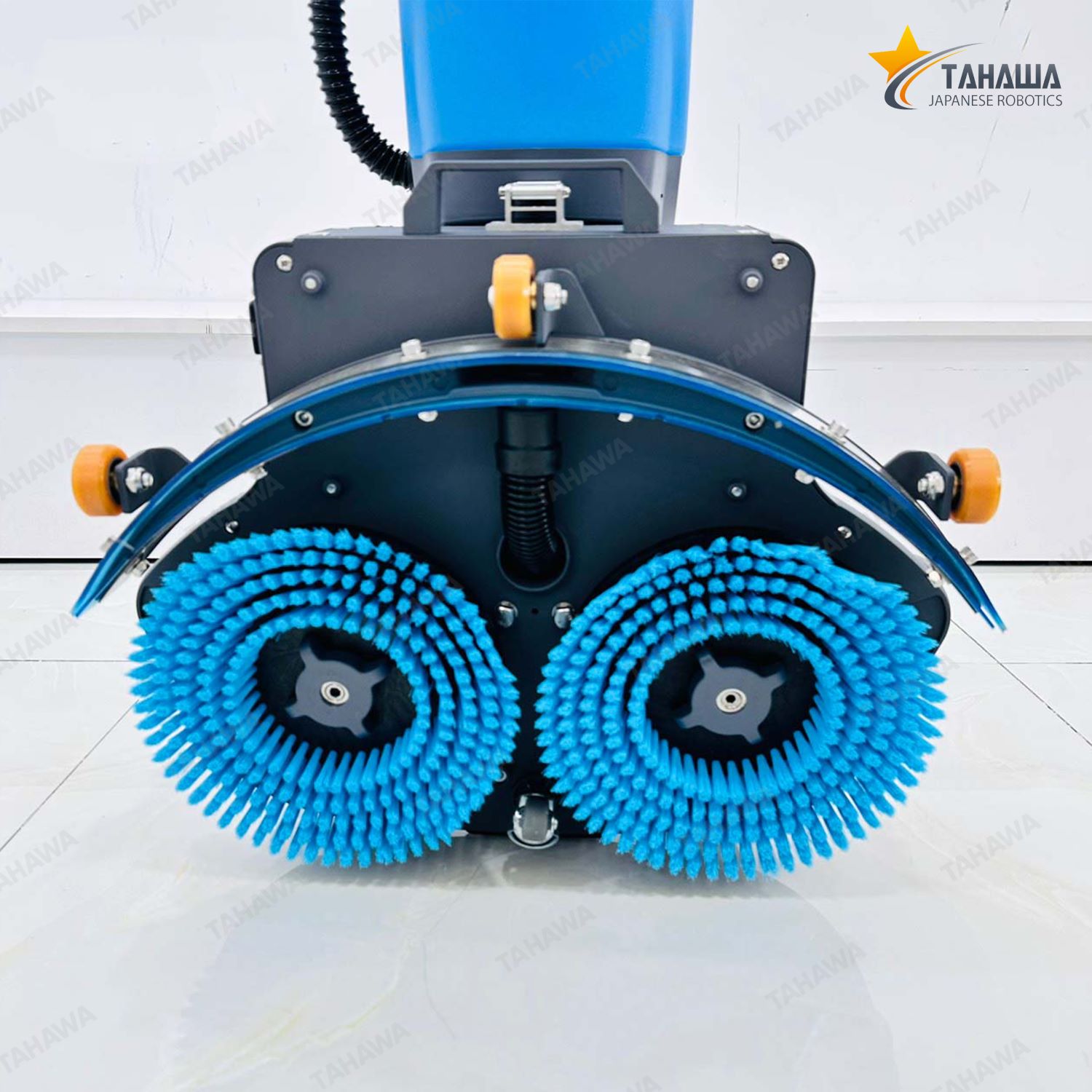 Với đường kính bàn chải 2 x 9 inch, máy có khả năng làm sạch diện tích rộng hơn so với các dòng máy mini thông thường. Kết hợp với thanh hút nước dài 520mm, Tahawa HC18 không chỉ làm sạch bề mặt mà còn hút sạch nước bẩn, giúp sàn nhà khô ráo ngay lập tức, tránh trơn trượt.