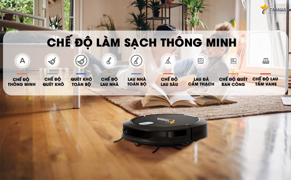 Được mệnh danh sản phẩm tích hợp tất cả trong một, robot hút bụi lau nhà tự giặt giẻ Tahawa TH-M23 cũng đáp ứng rất nhiều nhu cầu làm việc của nhiều khách hàng khác nhau làm sạch hiệu quả trên sàn gỗ, sàn gạch, hay thậm chí cả ban công.... Chính vì vậy Tahawa TH-M23 đã trang bị lên tới 9 chức năng làm sạch phù hợp với lựa chọn cho mọi khách hàng.