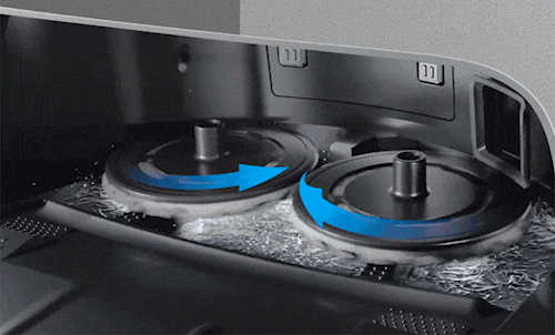 Robot hút bụi được trang bị cây lau nhà hai đĩa quay hoạt động linh hoạt như cây lau nhà. Với tốc độ 180 vòng/phút và áp suất cao 10N đảm bảo những thứ khó lau như cà phê, nước trái cây,... sẽ dễ dàng bị loại bỏ ngay tức khắc.