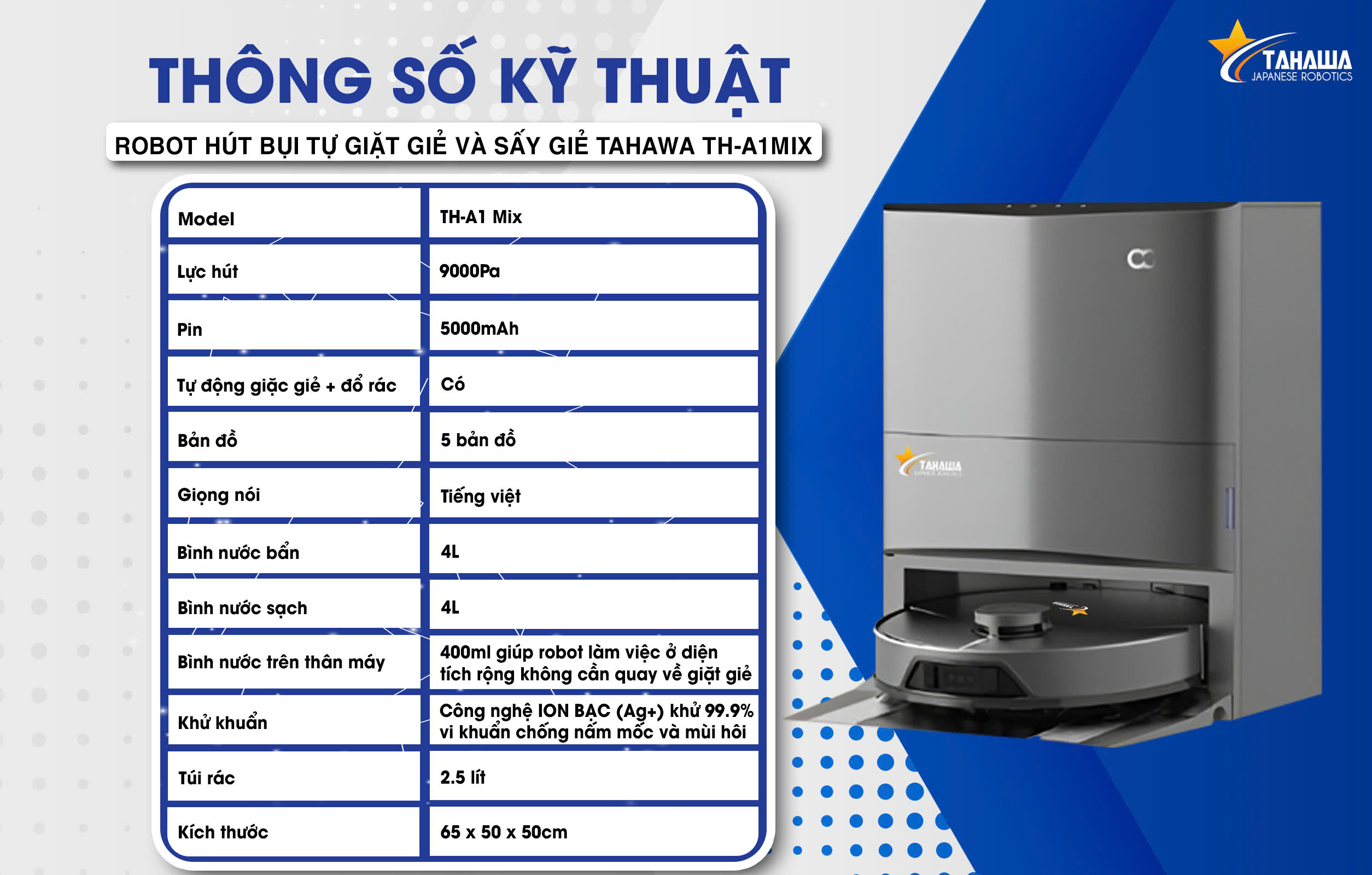 Robot hút bụi lau nhà TAHAWA TH-A1 Mix có thể nói là cuộc cách mạng đối Với robot hút bụi lau nhà truyền thống, với Lực hút cực mạnh 9000pa Pin 5000mAh , Robot Tự động giặt giẻ, lau xoay 360 độ - Phiên Bản Bản Quốc Tế - Giọng nói Tiếng Việt.