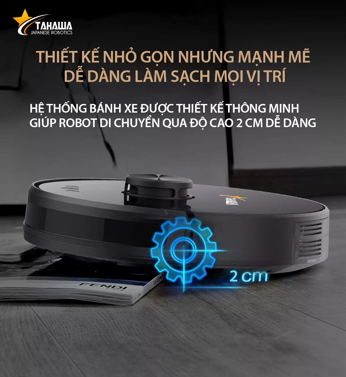 Ngoài ra máy có khả năng vượt các loại vật cản lên tới 2cm, điều đó sẽ giúp TH-07XR có khả năng làm sạch mọi ngóc ngách trong ngôi nhà bạn.