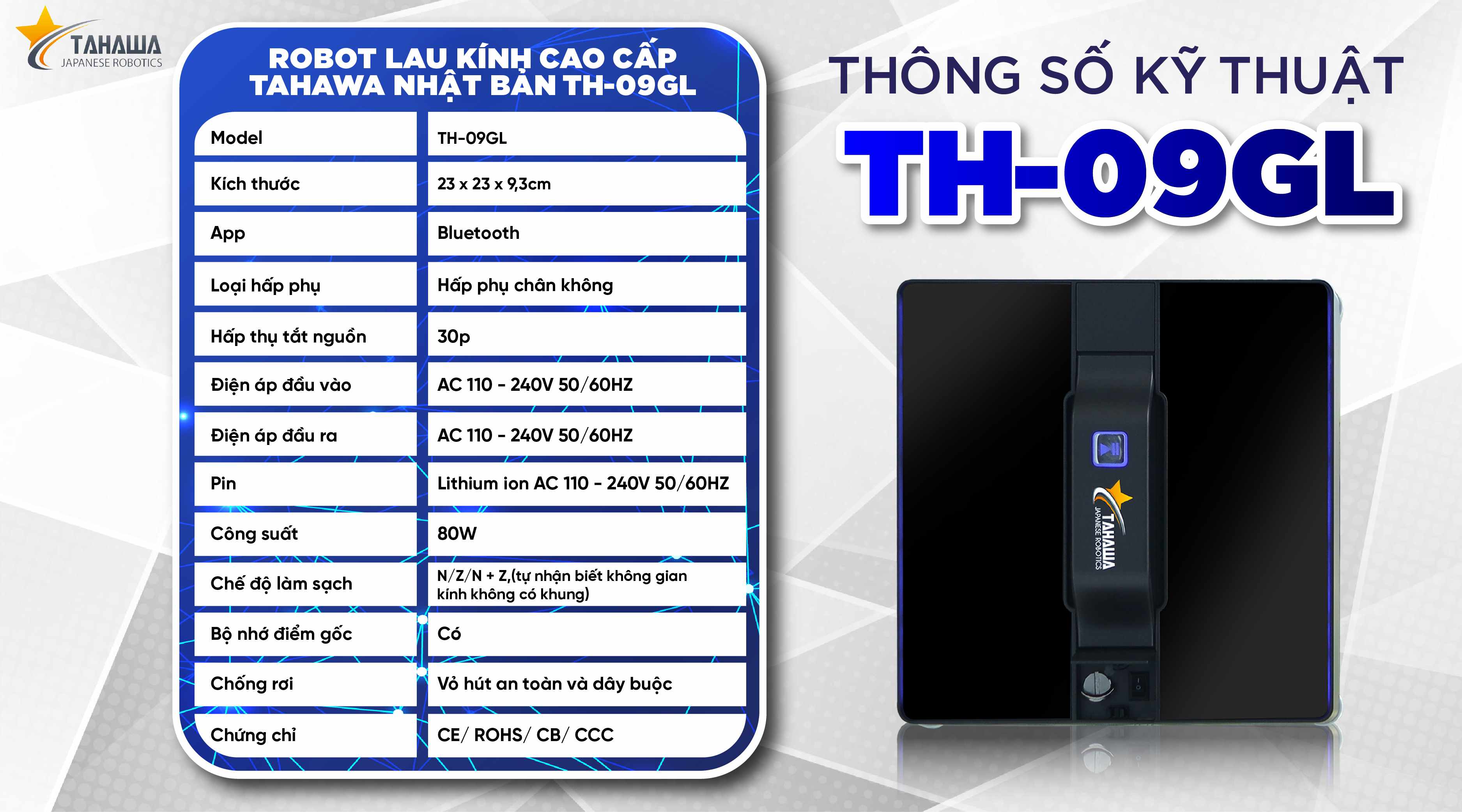 THÔNG SỐ KĨ THUẬT CỦA ROBOT LAU KÍNH TAHAWA NHẬT BẢN TH-09GL