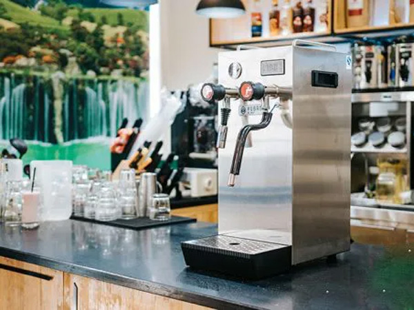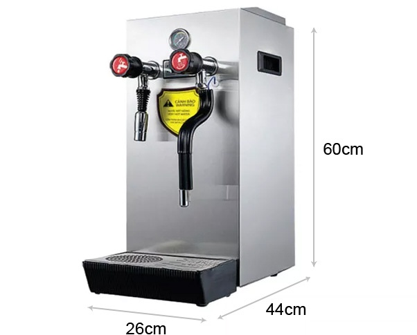 Dung tích bình chứa 5 lít của máy phù hợp với nhu cầu pha chế hoặc phục vụ đồ uống nóng trong các quán cà phê, nhà hàng. Khi bình chứa gần hết nước, hệ thống tự động đun sôi và giữ nhiệt sẽ duy trì nhiệt độ nước ở mức 100 độ C, sẵn sàng phục vụ mọi lúc.