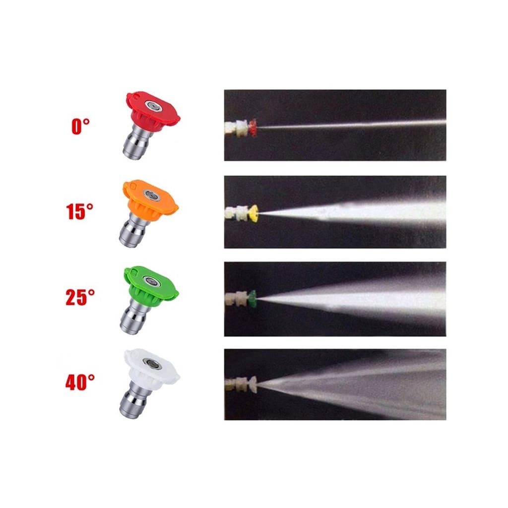 Béc phun là “trái tim” của máy phun rửa áp lực cao. Mỗi loại béc có góc phun và áp lực khác nhau, phù hợp cho từng loại bề mặt: