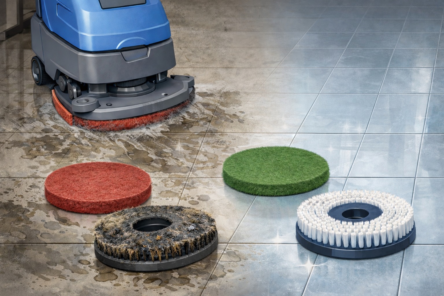 3. Cách chọn pad hoặc bàn chải đúng để máy chà sàn làm sạch hiệu quả hơn